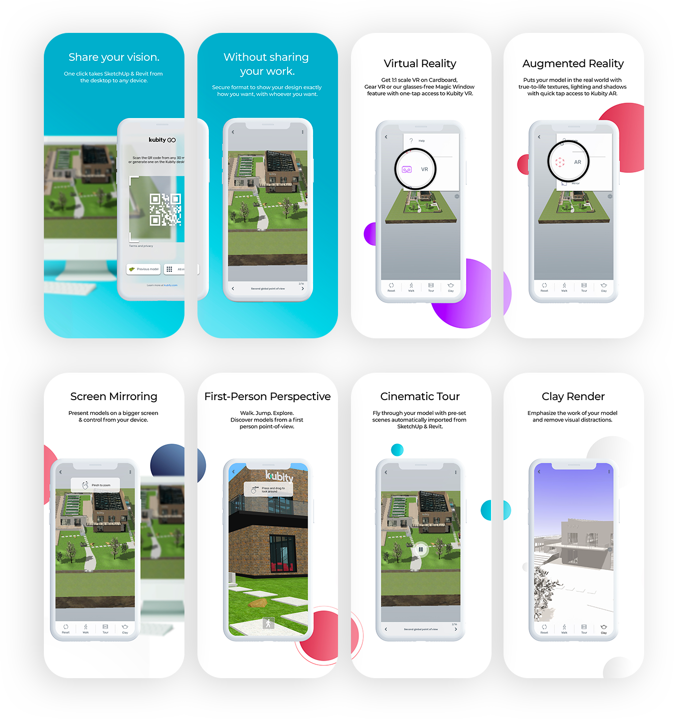 Instantly take SketchUp models and Revit projects from the desktop to any device in a secure crystallized format without compromising the original file. Kubity PRO is a tool to help you wow clients and win projects with immersive, true-to-scale mobile models. .